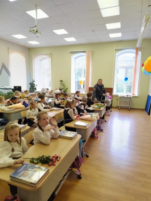 В День знаний сотрудники отдела надзорной деятельности и профилактической работы управления МЧС по Василеостровскому району посетили учащихся нашей школы и провели уроки безопасности, напомнив о правилах пожарной безопасности.